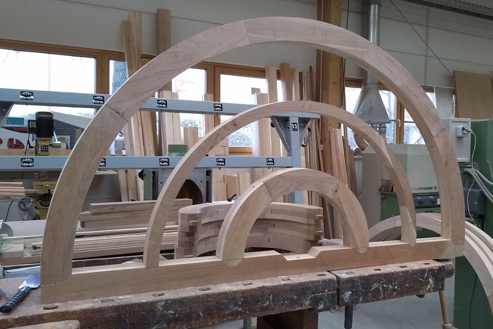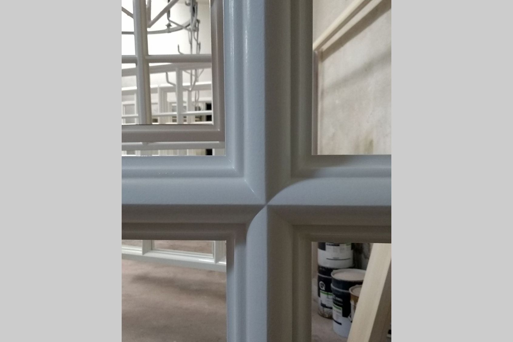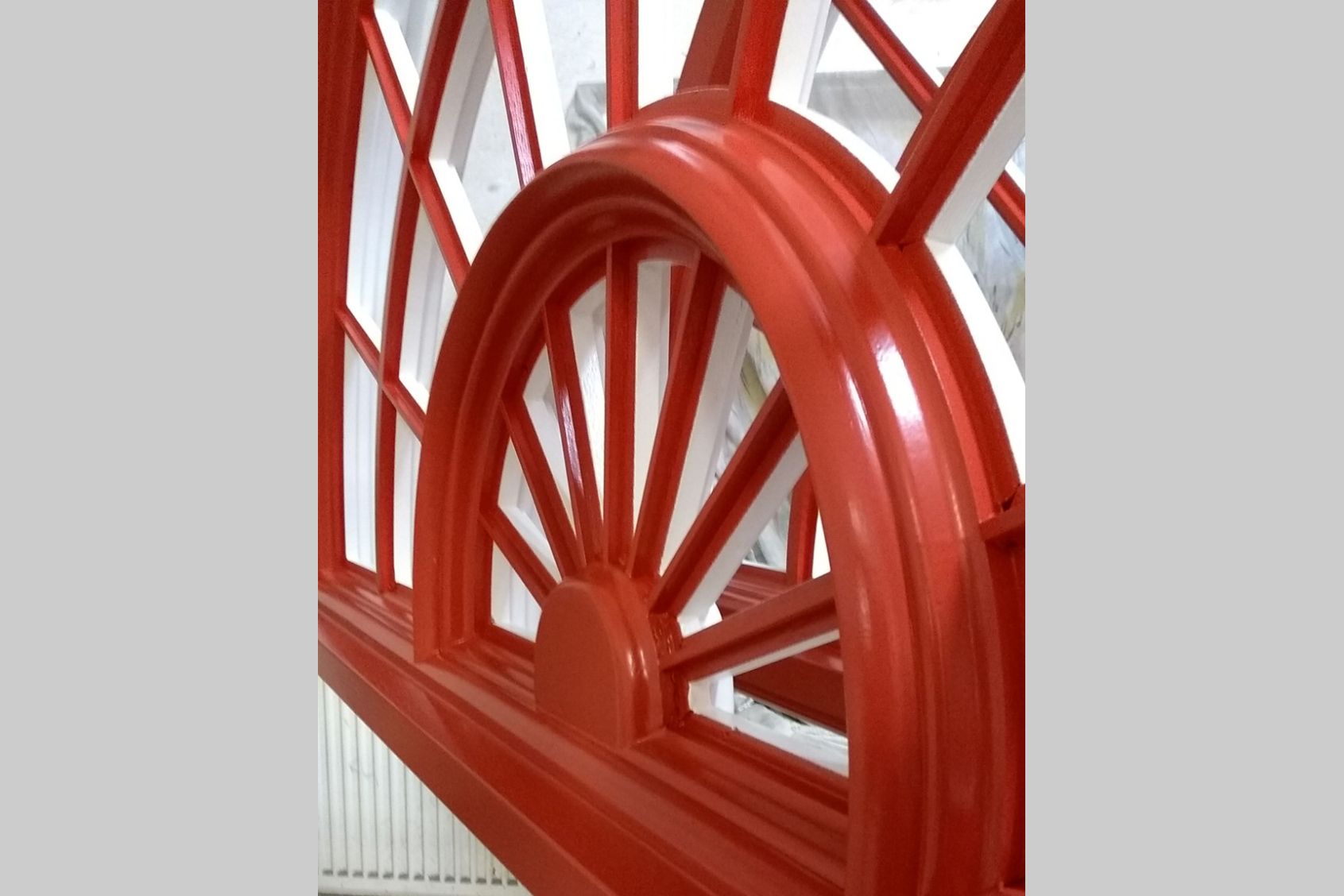 Neubau festverglaste Fensterelemente mit Rundbogen, sprossengeteilt